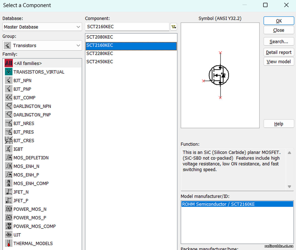 Для корректного моделирования можно использовать SiC мосфеты SCT2160KEC. Эти мосфеты 1200В с сопротивлением канала 160мОм, практически полная копия C2M0160120D.