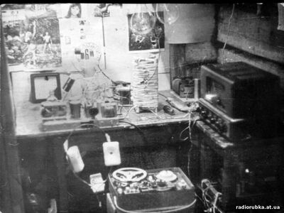 А через десяток лишним лет, в кладовке было оборудован первый ШЕК, (я тогда не знал, что это так называется), который с приставки на на 6п3С к приемнику Урал, подрос до 2х ГУ50 _ ГУ80 и антенны ЛУЧ на соседний дом. На нем стояла бесхозная мачта с антенной Метелка, которая давно слетела, но стояла... Как туда наверх закрепить свою проволоку? Мачта метров 5 на двухскатной железной крыше (это я сейчас понимаю), а может чуть больше. 3 оттяжки, снять ее не под силам.. Сделал из консервной банки воронку, закрепил ее на шест примерной высоты с мачтой. Как стемнело полез. Все натихаря, чтобы соседи не видели и не подняли "кипеж". А чО это он там лазит? Воронку с привязанным проводом удалось одеть на мачту, пару изоляторов в виде фарфоровых роликов от электро проводки присутствовали! Другой конец крепился уже на нашем крыльце. Фидера в виде кабеля не было, потому что его не было... Провод был банально обмотан "черной" изолентой и шуровал прямо в кладовку, где по осени пахло квашеной капустой из деревянной бочки. Когда одним из моих "корреспондентов" стал Новичок из Северодвинска, радости моей не было предела. В каком-то магазине была куплена карта СССР, повешена на стену, а на ней карандашом стали отмечаться ночные связи. Все это было еще до армии, потом уже было не до этого. Смена QTH, другие интересы. Пока не пришло время...