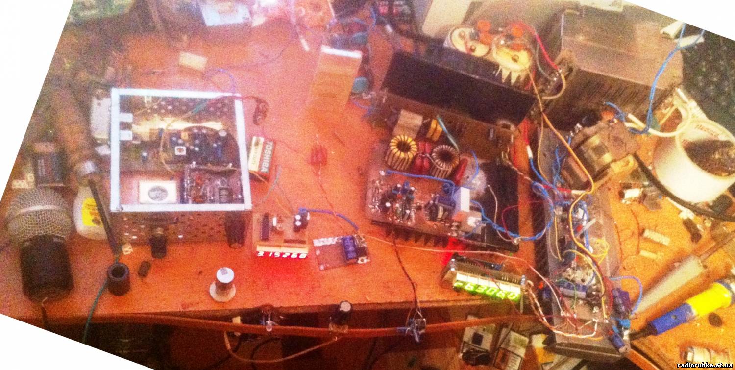 P.S. Чтобы не быть голословным, вот фото "макета" передатчика Рафинад 6200 Крупным планом Синтезатор, Шим модулятор и оконечник 2х14nk50 Общий план, это весь трансивер, но с другим приемником. Страшно конечно, но работает