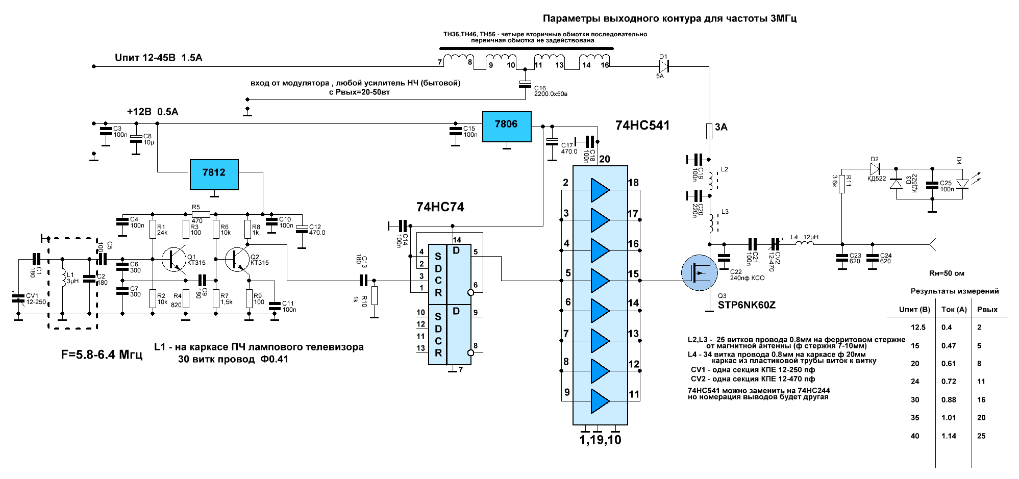 | Всем, добрый вечер. Сделал модулятор с микрофонником по схеме из сообщения1628 работает отлично. Решил попробовать ШИМ, при установке 40% напряжения питания ( у меня с БП 80вольт) модуляция уходит на задний план, впереди несущая. Нормальная модуляция только при напряжении меньше 18 вольт на выходе с ШИМа.Что я сделал не так? собрано вот по этой схеме