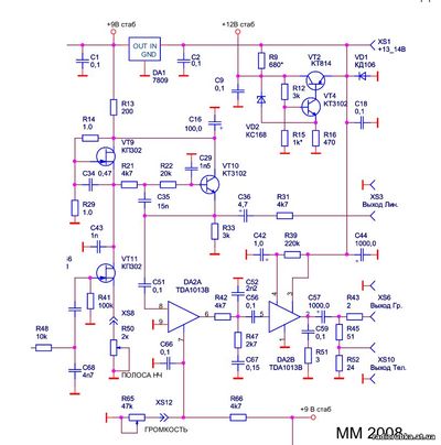 | Цитата kotrad78 (  ) 1. На схеме насчитал 6 подстроечных резисторов. так там сложно что то выкинуть, может после первого макетирования уточнятся номиналы и можно будет. Например, регулировка полосы вообще на переднюю панель выносится, а можно и "нет".